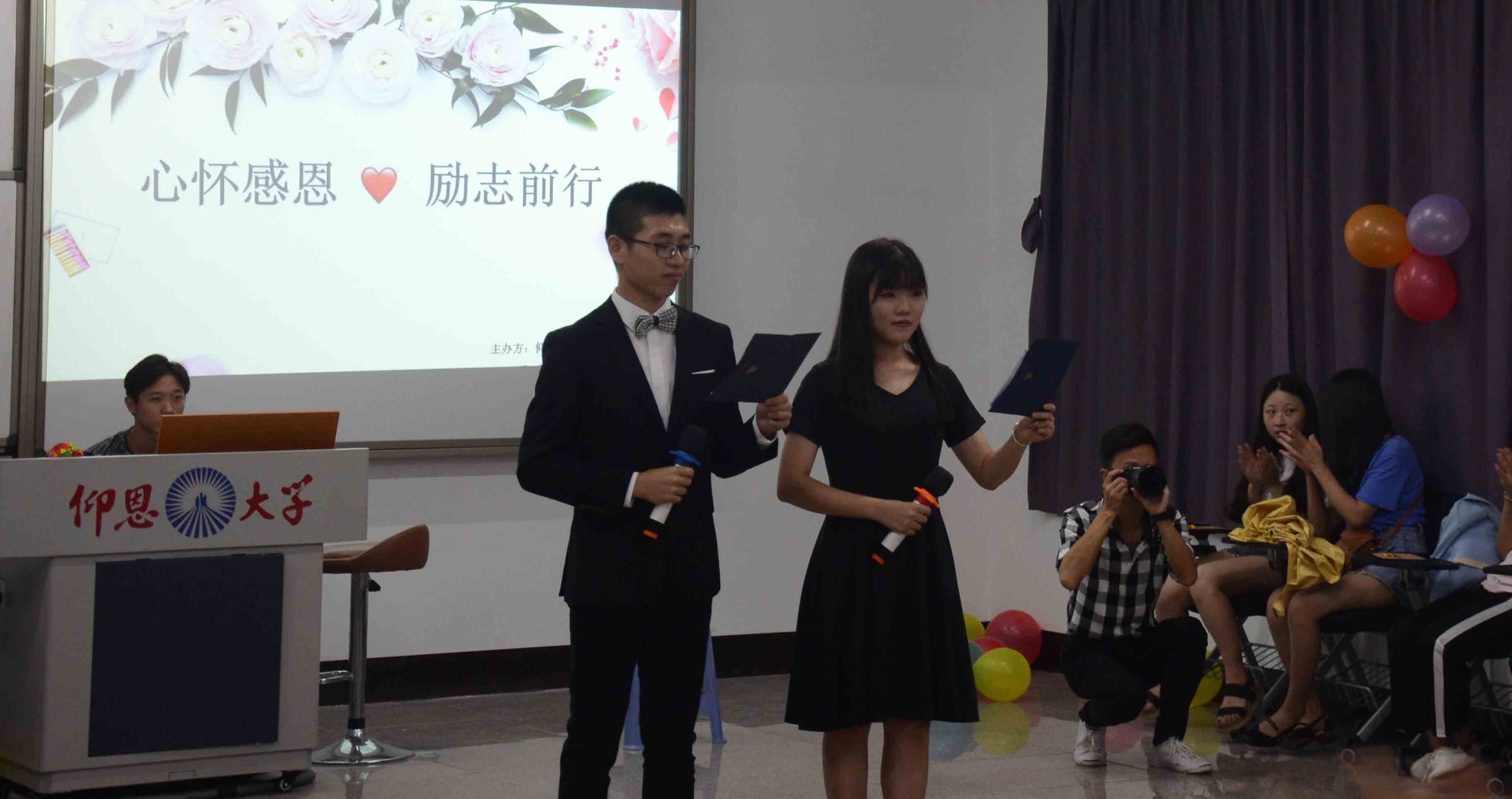 为进一步弘扬和培育中华民族感恩的传统美德,让大学生懂得感恩父母、师长、回报他人、回报社会,培养大学生成为关爱他人、服务社会、忠于祖国、道德高尚的有用之才。6月7日晚,williamhill英国官网于普照楼205教室举办“助学 筑梦 铸人”主题晚会。出席此次晚会的有williamhill英国官网党总支书记兼副院长胡友仁、WilliamHill官方网站团委副书记曹流、williamhill英国官网辅导员刘巧玫、陈峰、李少聪、朱婷,以及学务秘书林志荣和学院学生代表。