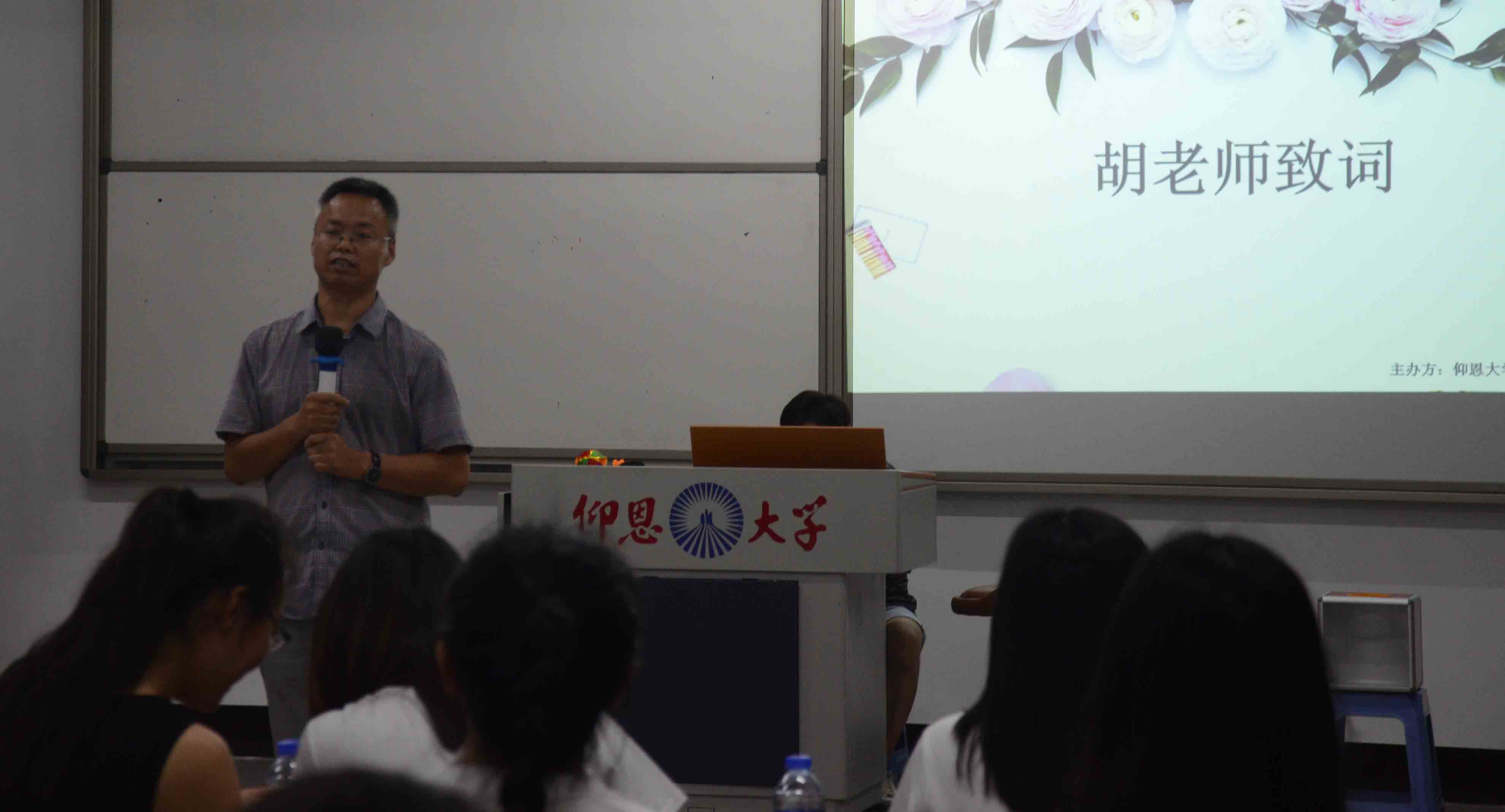 晚会开始之际,胡友仁老师发表讲话,他强调了此次感恩主题晚会的重大意义,同时以自己求学生涯中受到国家的扶持和帮助的经历勉励在场的同学。