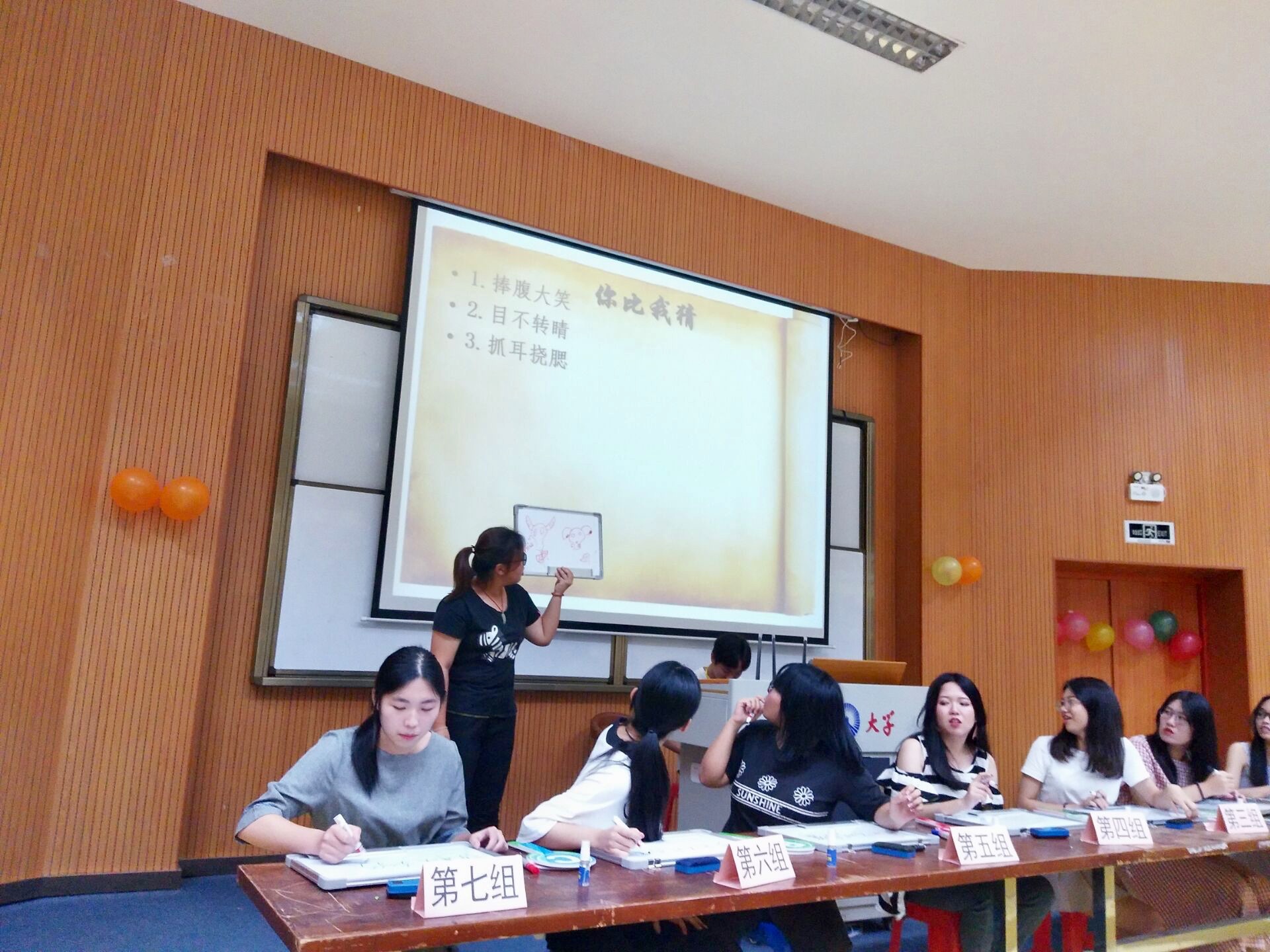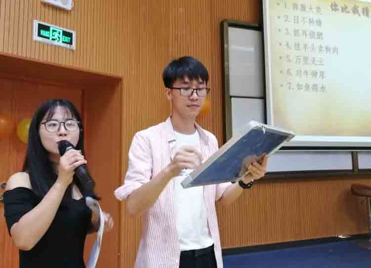在“你画我猜”的环节,辅导员李少聪亲自上阵,非常迅速流利地3秒作画,呈现的作品形象生动,赢得现场阵阵欢呼。