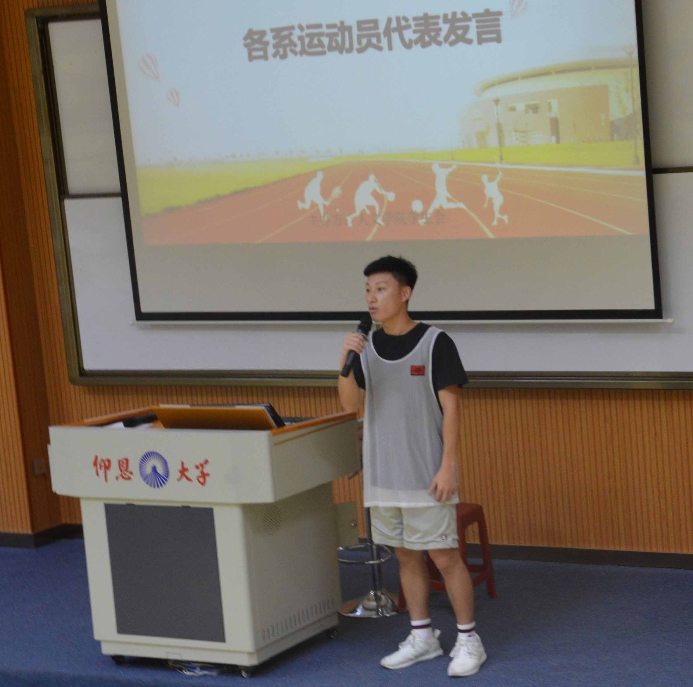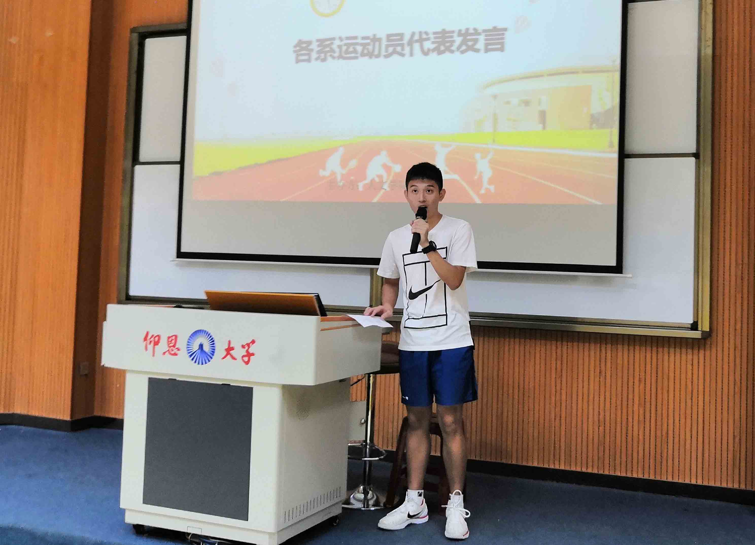 中文系的运动员代表范乾煜发言