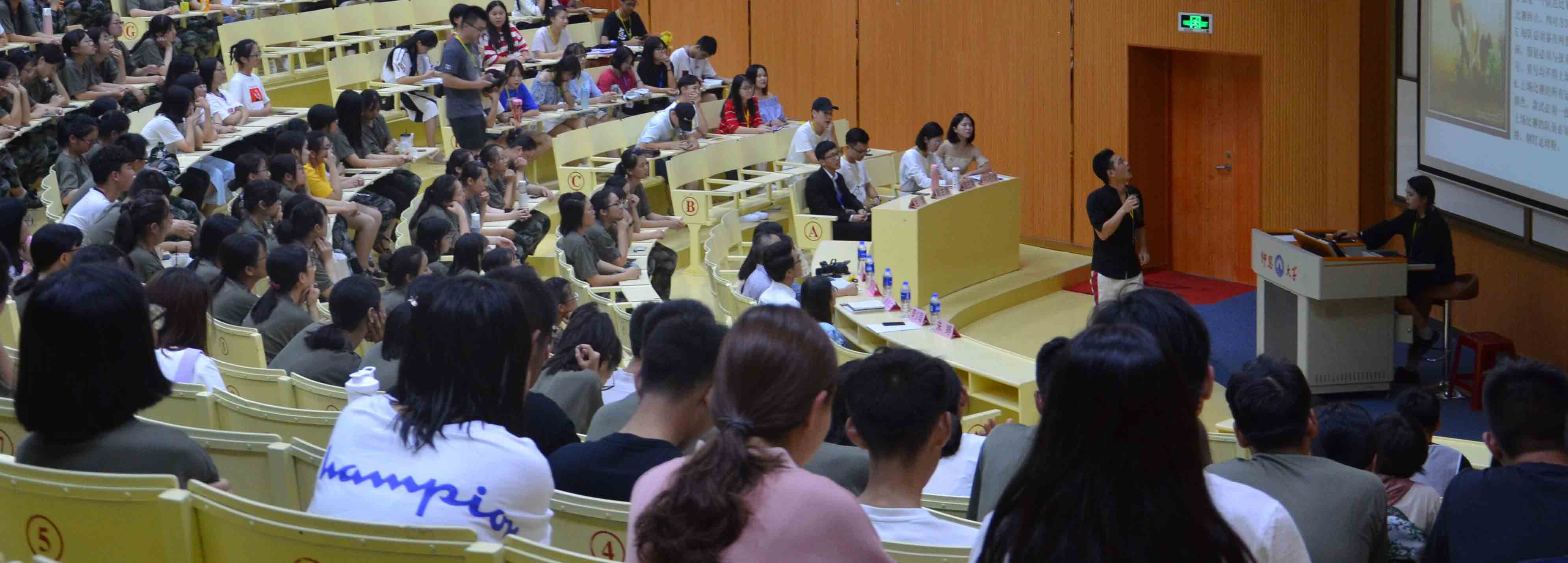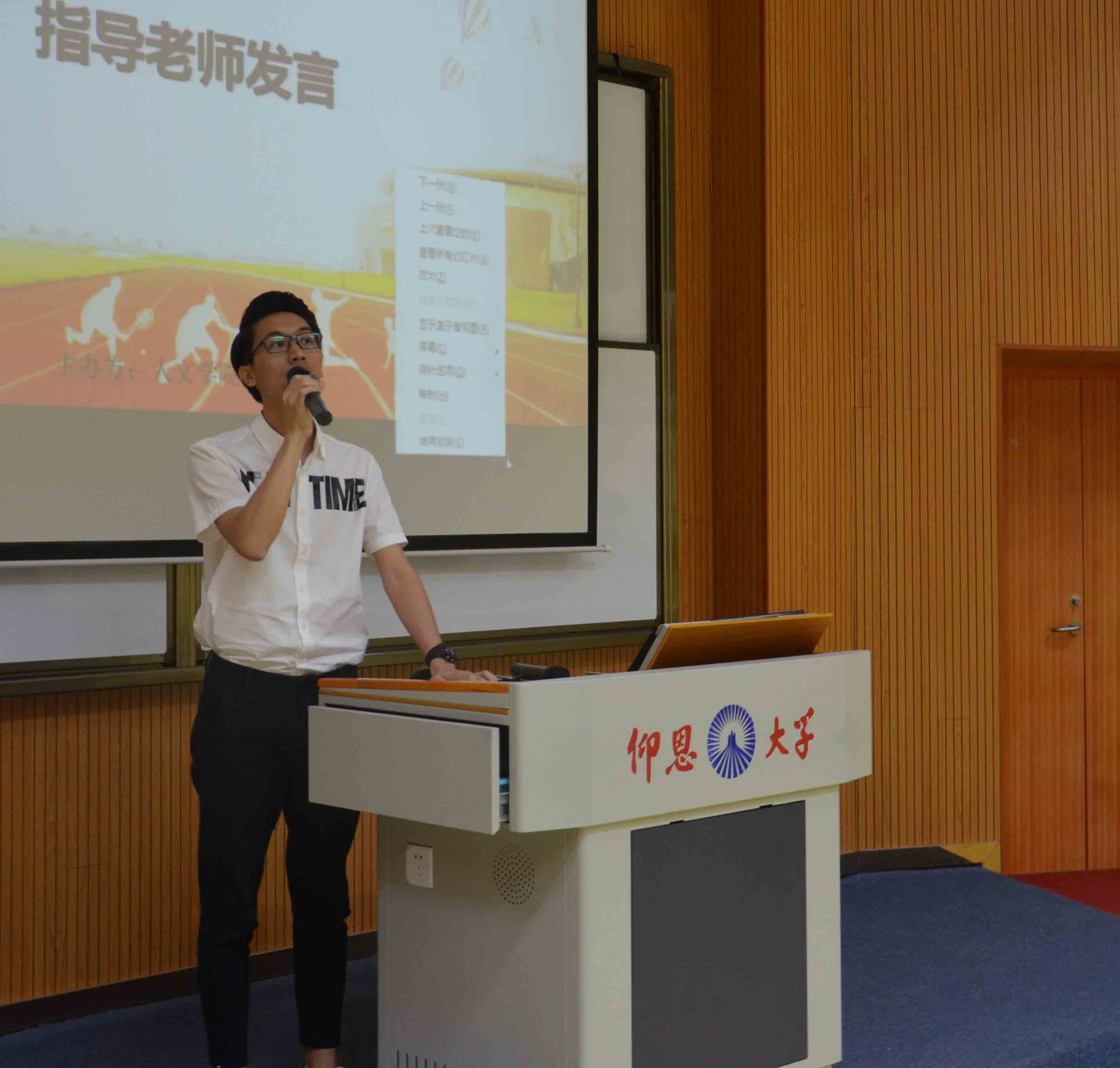 活动现场 在活动开始之际,大家观看了去年校运动会williamhill英国官网学生参赛的精彩照片和视频,感受校运动会的风采和魅力。学生会体育部代表张学凯同学率先发言,介绍了校运会的团体赛项目以及个人项目的比赛规则及注意事项。随后,各系运动员代表依次发言。中文系的范乾煜用慷慨激昂的语气鼓舞在场学生要有责任、有担当,为学院集体的荣誉奋勇拼搏。新闻系的朱方润从运动会对个人的益处角度出发,表示运动会是一个很好的挑战自我、锻炼自我的平台。广告系的曾陈生分享了自己参加足球赛,在第一场比赛失败之后,全体队员拧成一股绳,拼尽全力最终获胜的经历,呼吁同学们在运动会中“为自己而战,为学院而战”。