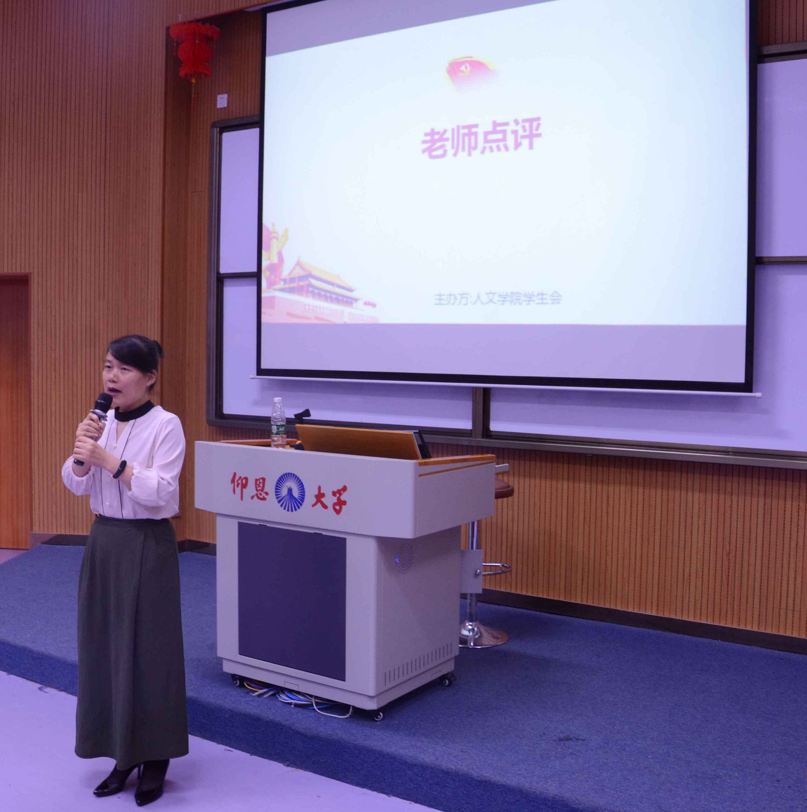 岳秀文老师对本次比赛做了精彩的点评和总结,既肯定了同学们所选的朗诵内容能够紧扣时代主题,肯定了同学们参赛的积极性,表示只有热爱民族语言文字,才能为建设与综合国力相适应的语言文化强国提供应有的支撑,也指出了有些同学的普通话水平还需要提高,同时,建议同学们多阅读经典文化作品,理解文学作品的内涵和情感,只有这样,才能将作品演绎得更加完美。