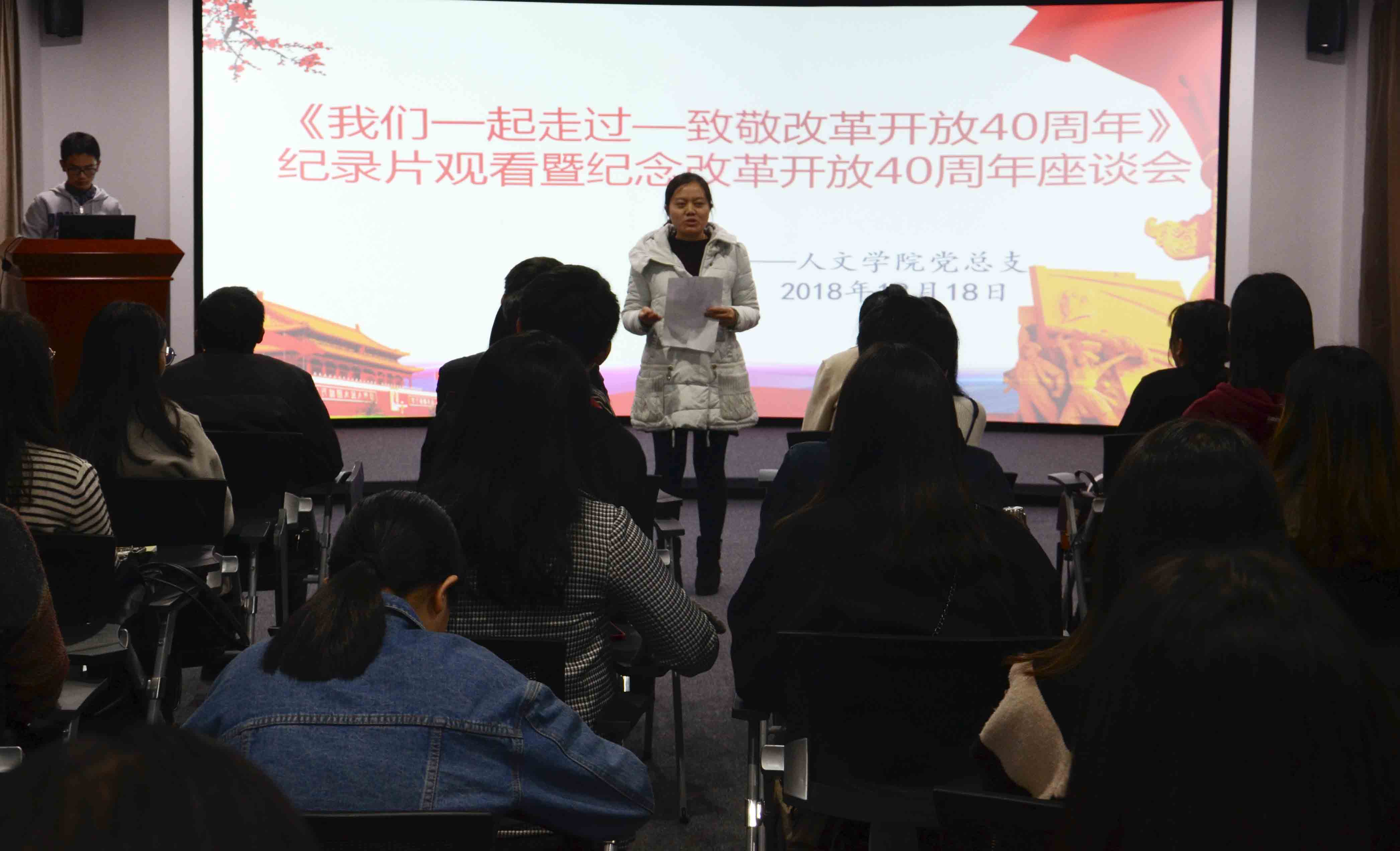 座谈会现场 在座谈会召开之前,党员代表们集中观看了大型纪录片《我们一起走过——致敬改革开放40周年》,座谈会由williamhill英国官网党总支副书记刘巧玫主持。