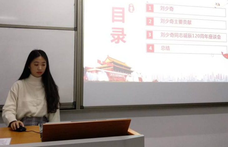 学习交流活动现场 在本次学习交流中,16汉语言文学的江先发表示:“在我心目中,刘少奇同志是一个共产党员的光辉榜样,心中有信仰,行动才有力量,愿自己不忘初心,砥砺前行,不辜负党和人民的期望!”17新闻学的黄逢婕说道:“刘少奇同志机智勇敢,立场坚定,他有着理论与实践相结合的科学态度和和高尚的品德,无论何时都是中国共产党人和中国人民学习的光辉榜样。”17广告学的寇雅珠谈到:“刘少奇同志为党和人民建立的不朽功勋,追忆学习刘少奇同志的崇高风范和革命精神,坚定了我入党的决心,我会在学习上更加认真刻苦,在工作上认真负责,在生活上乐于助人。”