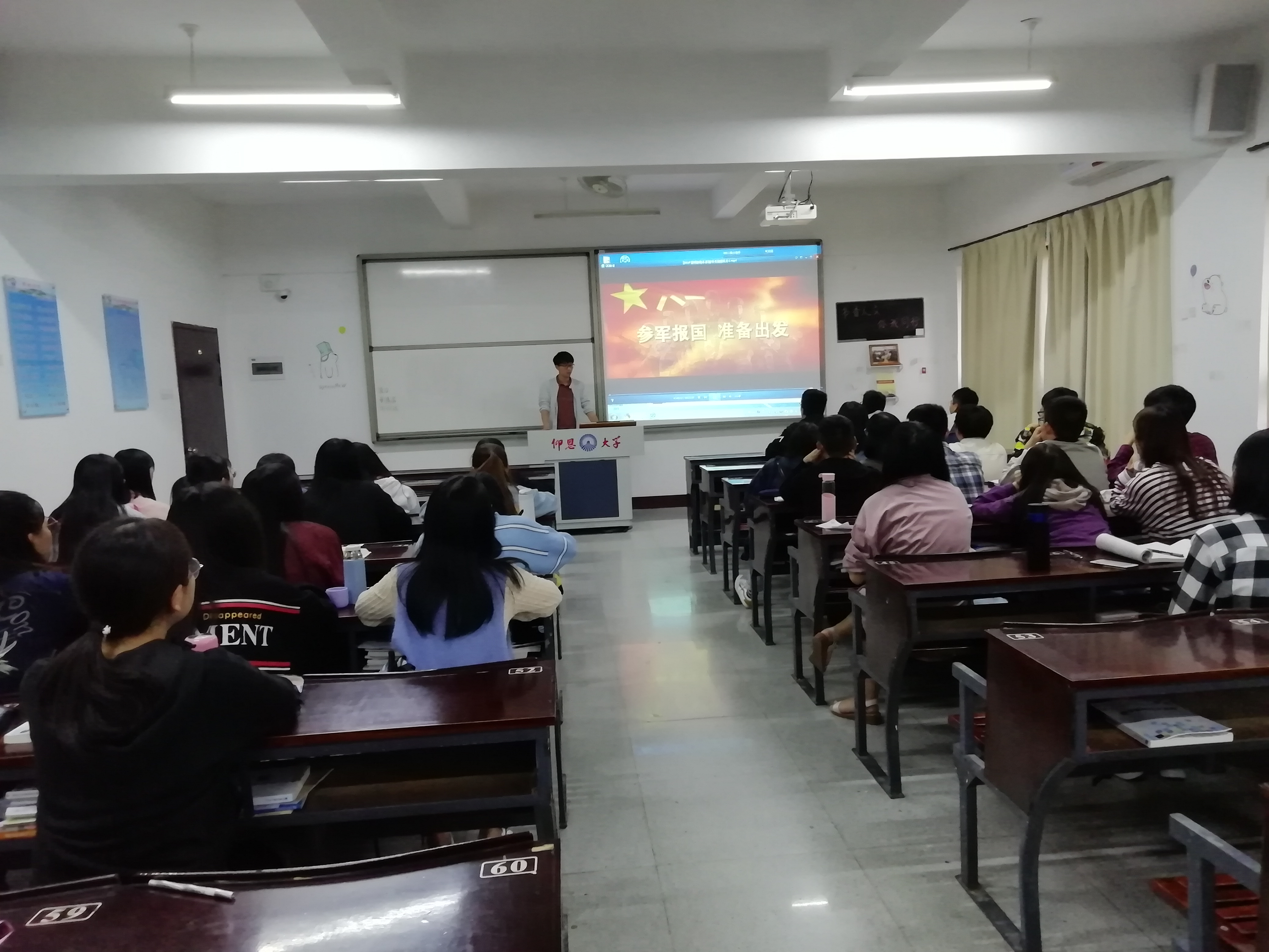 根据学校征兵工作的要求,落实学院征兵工作推进会的总体部署,williamhill英国官网各班级于4月14日下午在各自班会课教室召开征兵主题班会,具体工作由班主任负责落实。各班级都组织观看了征兵宣传视频,进行了2019年征兵政策宣讲和现场答疑,其中重点学习了国防教育手册中的WilliamHill官方网站鼓励学生参军政策规定,针对新闻学专业的班级还着重讲解了从普通高校毕业生中招收士官有关政策。据悉,下一阶段,将由班主任开展一对一面谈工作。