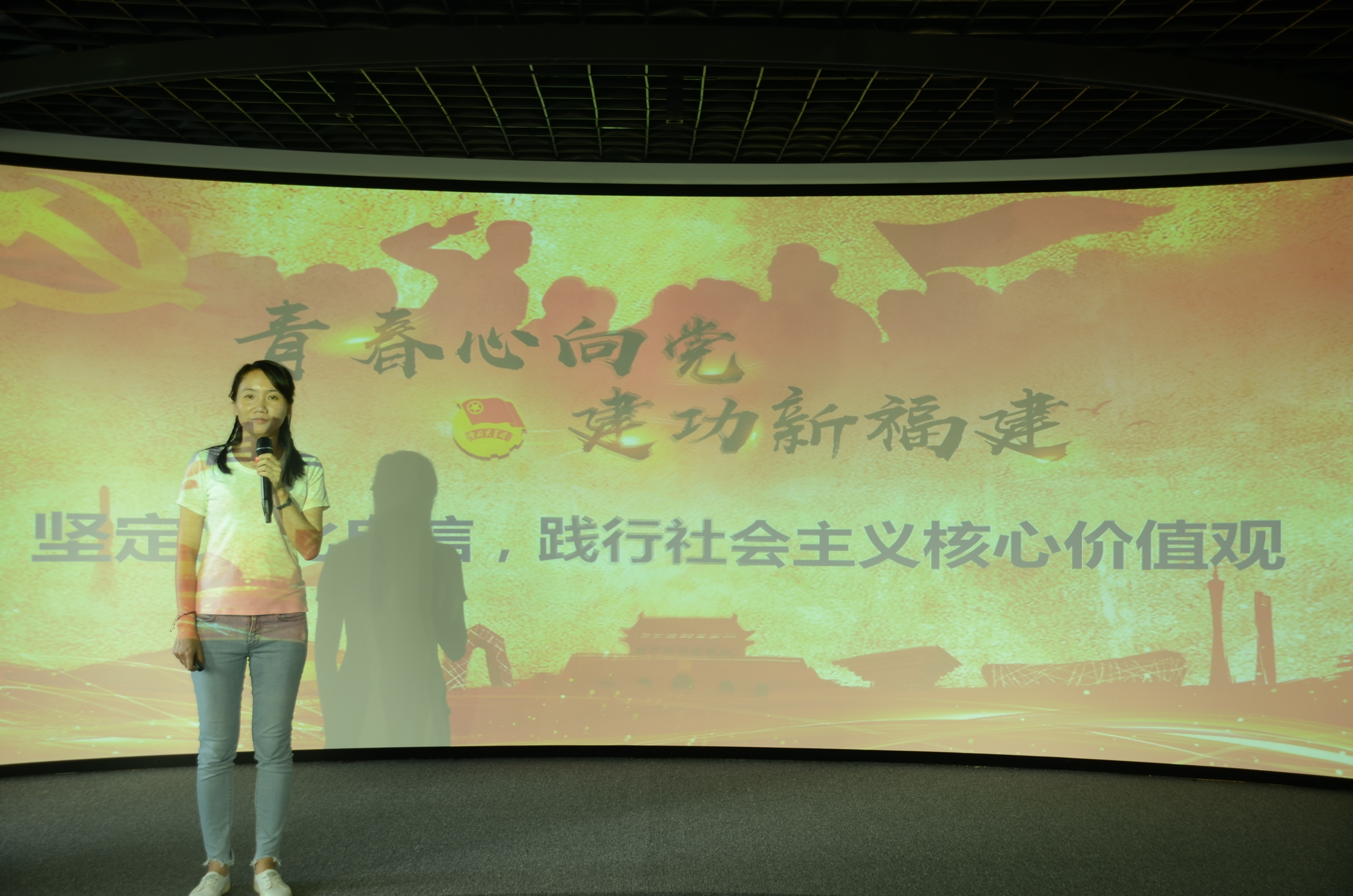 宣讲活动现场 宣讲从三个部分深入阐述了社会主义核心价值观以及文化自信对于国家、民族、个人的重要性,“扣好人生的第一粒扣子,明确自己从哪里来,往哪里去,追求的是什么”许淑琴以自己的独到见解辅以通俗易懂的例子,深入浅出,启迪着共青团员们树立正确的价值观。她强调,青年的价值观不仅关系到个人的发展前途,更关系到社会的价值取向,关系到国家的未来,广大共青团员要拿出自己的责任担当,在日常的学习生活中认真践行“八字要求”,勤学、修德、明辨、笃实。