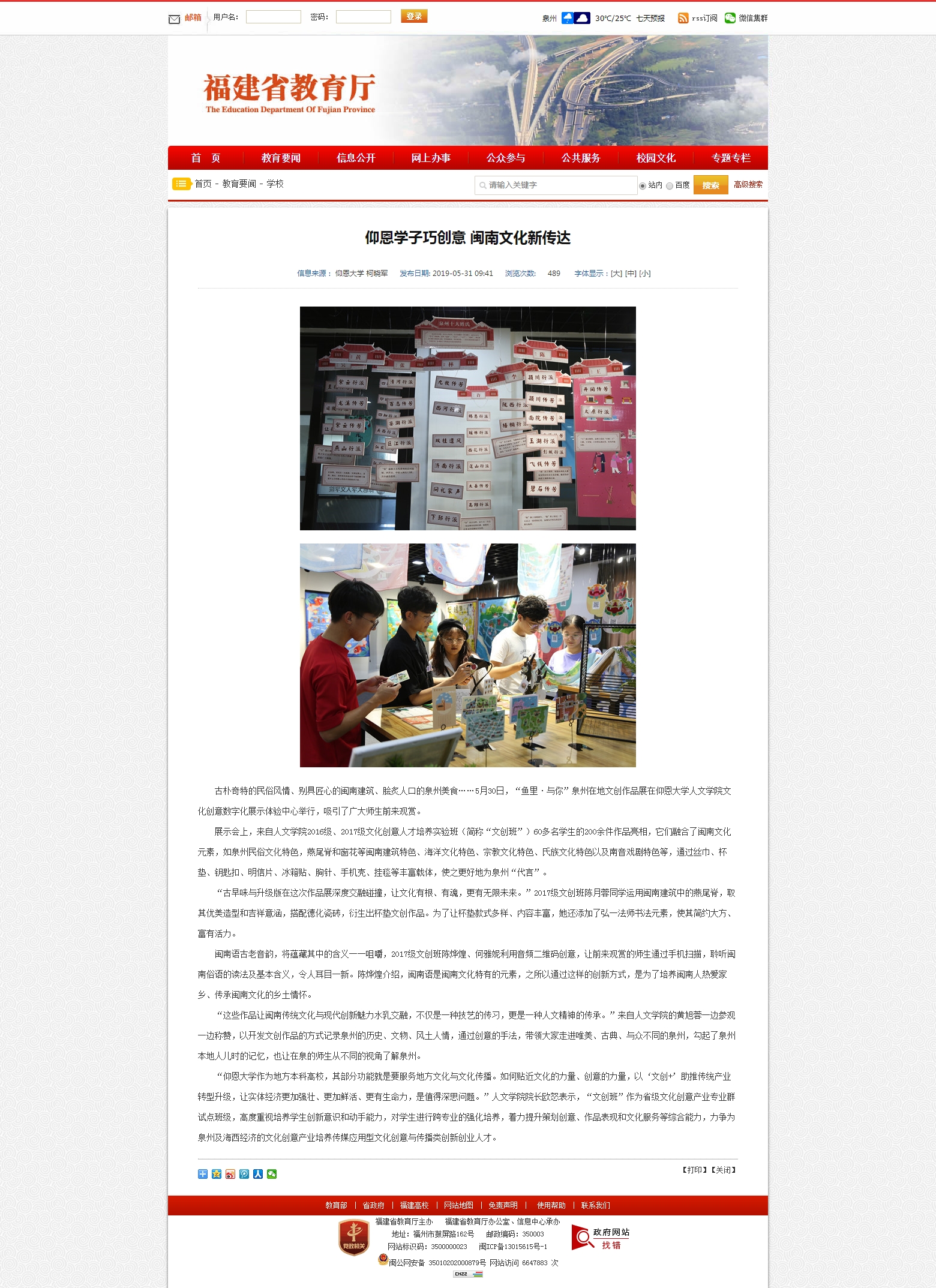 williamhill英国官网“文创班”作为省级文化创意产业专业群试点班级,高度重视培养学生创新意识和动手能力等综合能力,力争为泉州及海西经济的文化创意产业培养传媒应用型文化创意与传播类创新创业人才。近日,“鱼里·与你”泉州在地文创作品展在williamhill英国官网文化创意数字化展示体验中心举行,参展作品充分融合闽南文化元素,并使之与现代创新理念深度交融碰撞,借助丰富载体,以‘文创+’助推传统产业转型升级,让传统文化焕发出新的生机活力,吸引了广大师生前来观赏,也引起了泉州晚报、福建省教育厅官网、人民网福建频道、东南早报、东南网、清新福建文旅之声等媒介平台的关注和报道。