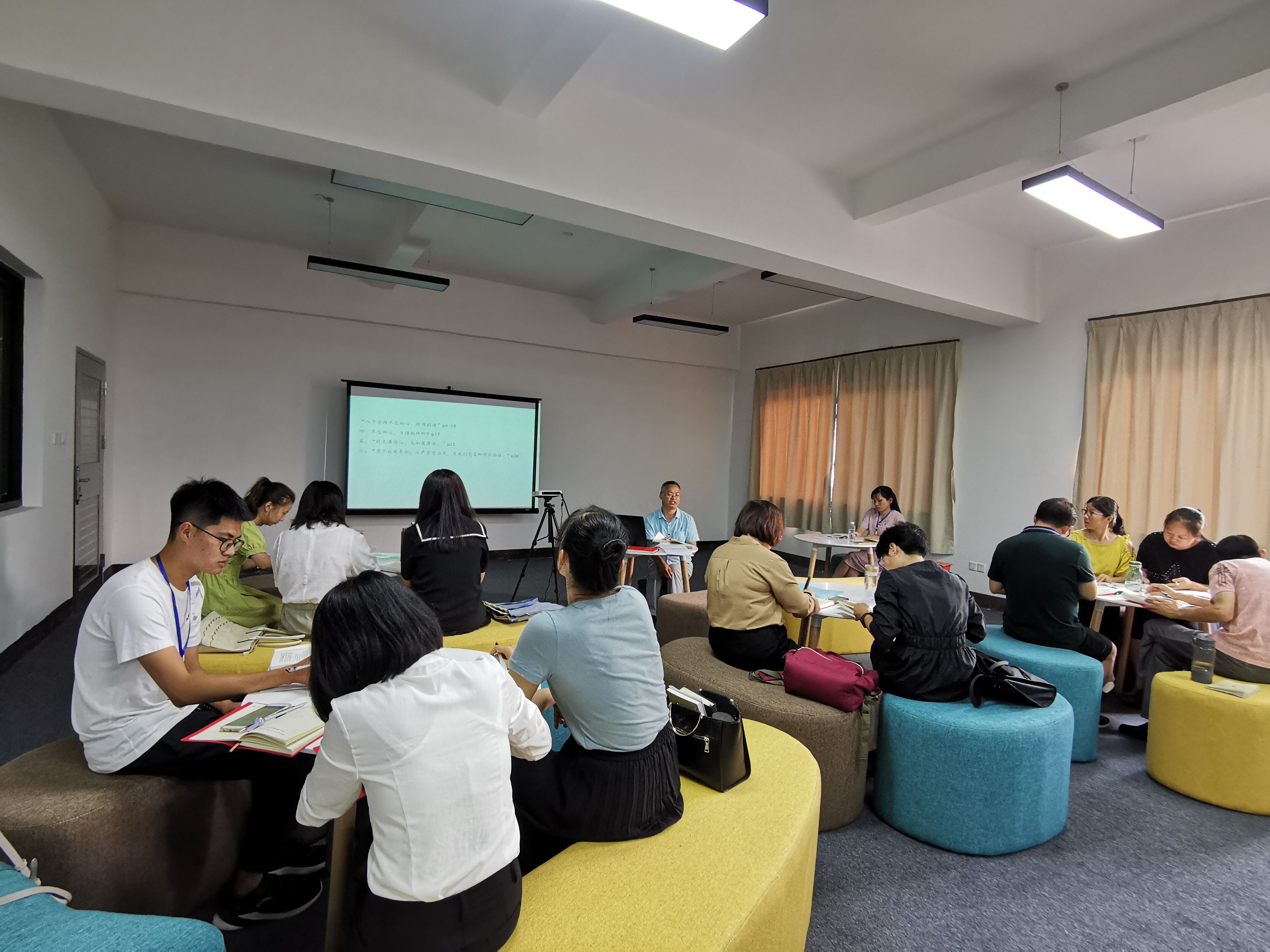 与会的教师党员学原文、读原著、悟原理,结合自身的工作实际谈体会、说感悟。