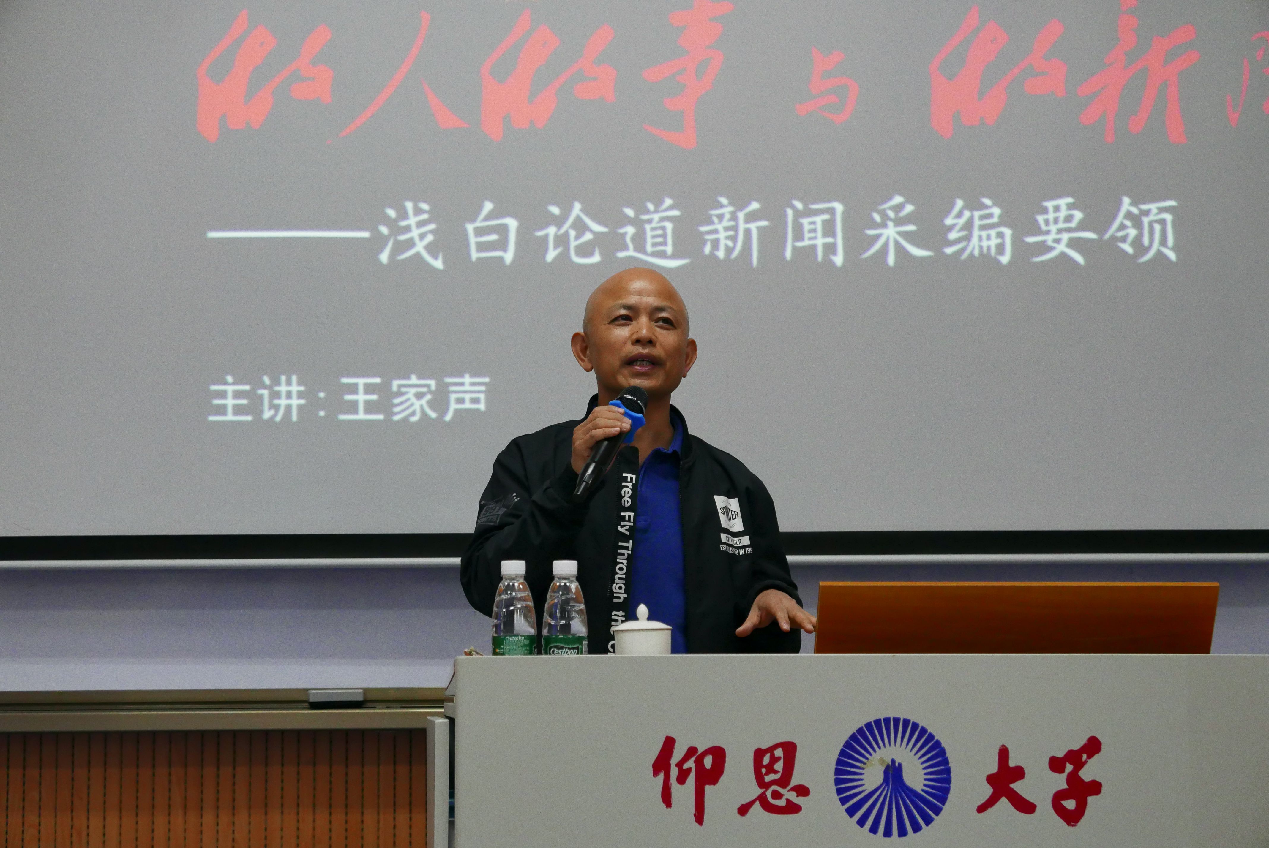 12月4日下午,受省委宣传部指派,王家声教授在第三校区博雅讲堂,为williamhill英国官网的百名师生带来一场传媒变局与新闻采编技能的精彩讲座。