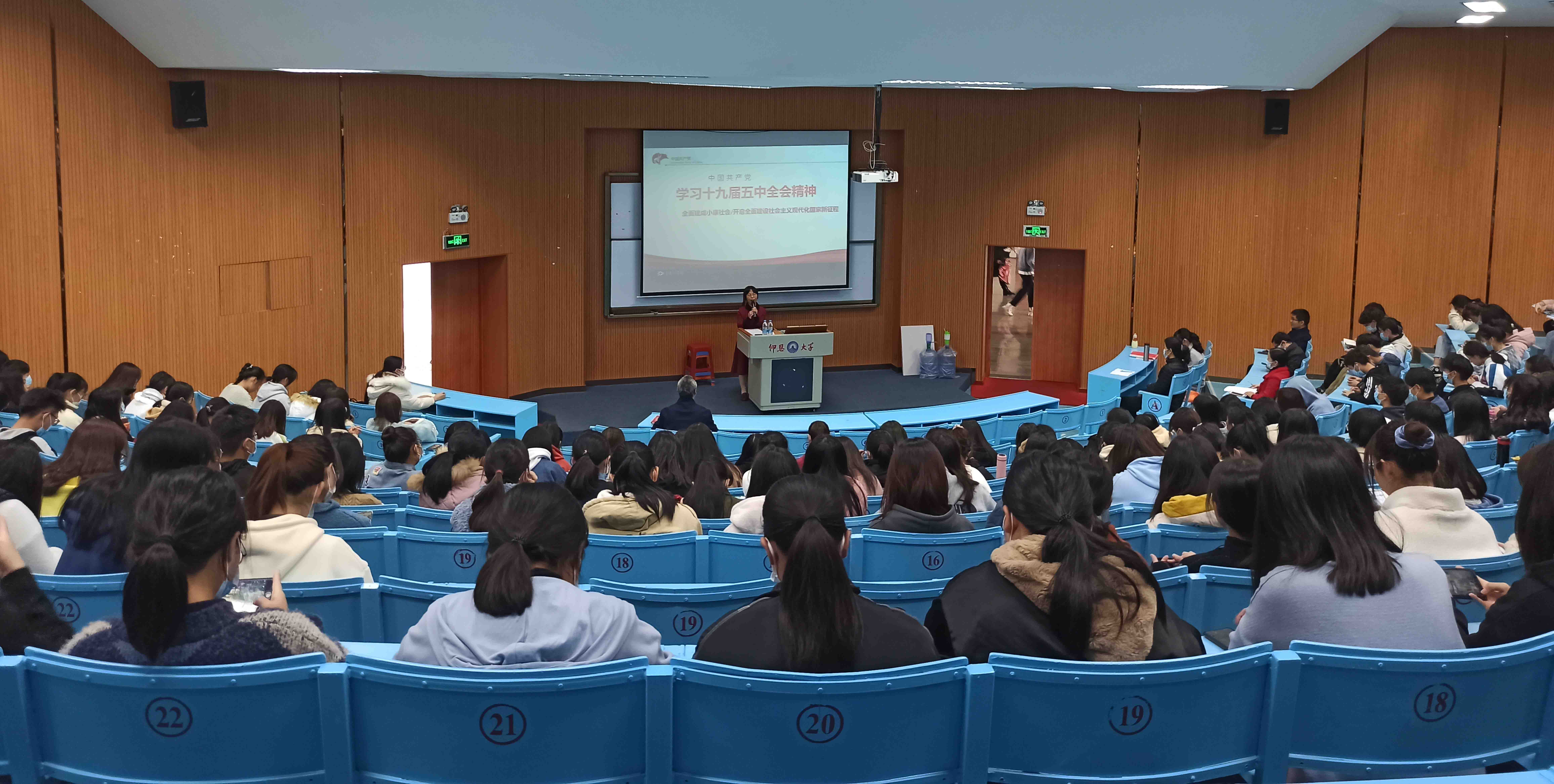 为全面深入学习领会党的十九届五中全会精神,12月23日下午在第三校区海纳讲堂,williamhill英国官网邀请马克思主义学院杨丽娥副教授为师生作“党的十九届五中全会精神”宣讲报告会。学院2020级学生和教职工到场参加。