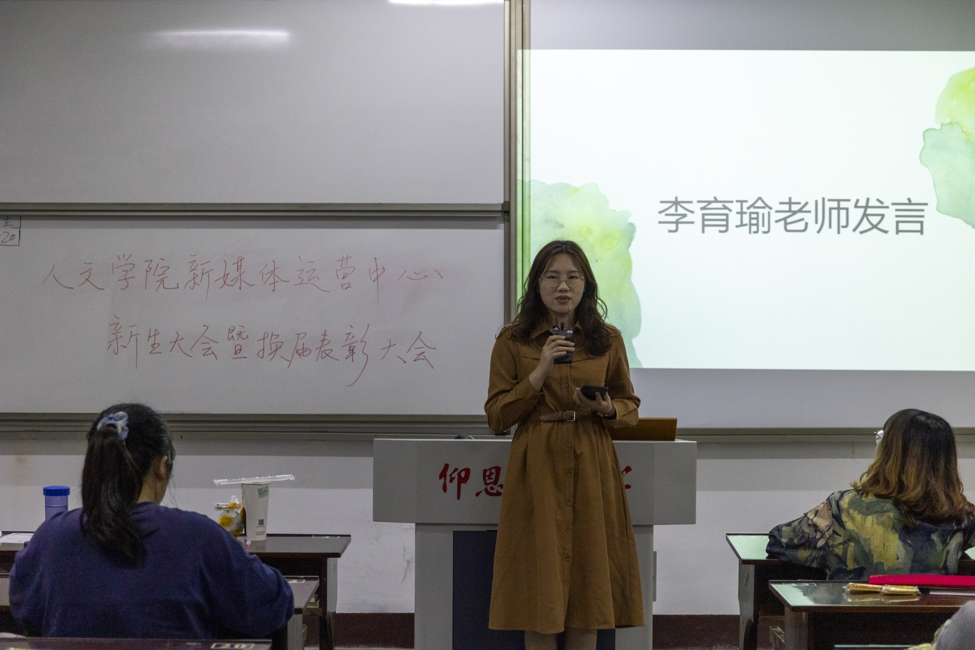 10月25日晚,williamhill英国官网新媒体运营中心新生大会暨换届表彰大会在WilliamHill官方网站第三教学区仰恩楼C2-303如期举行。williamhill英国官网新媒体运营中心指导老师李育瑜老师、新老干部及21级新生成员参加会议。