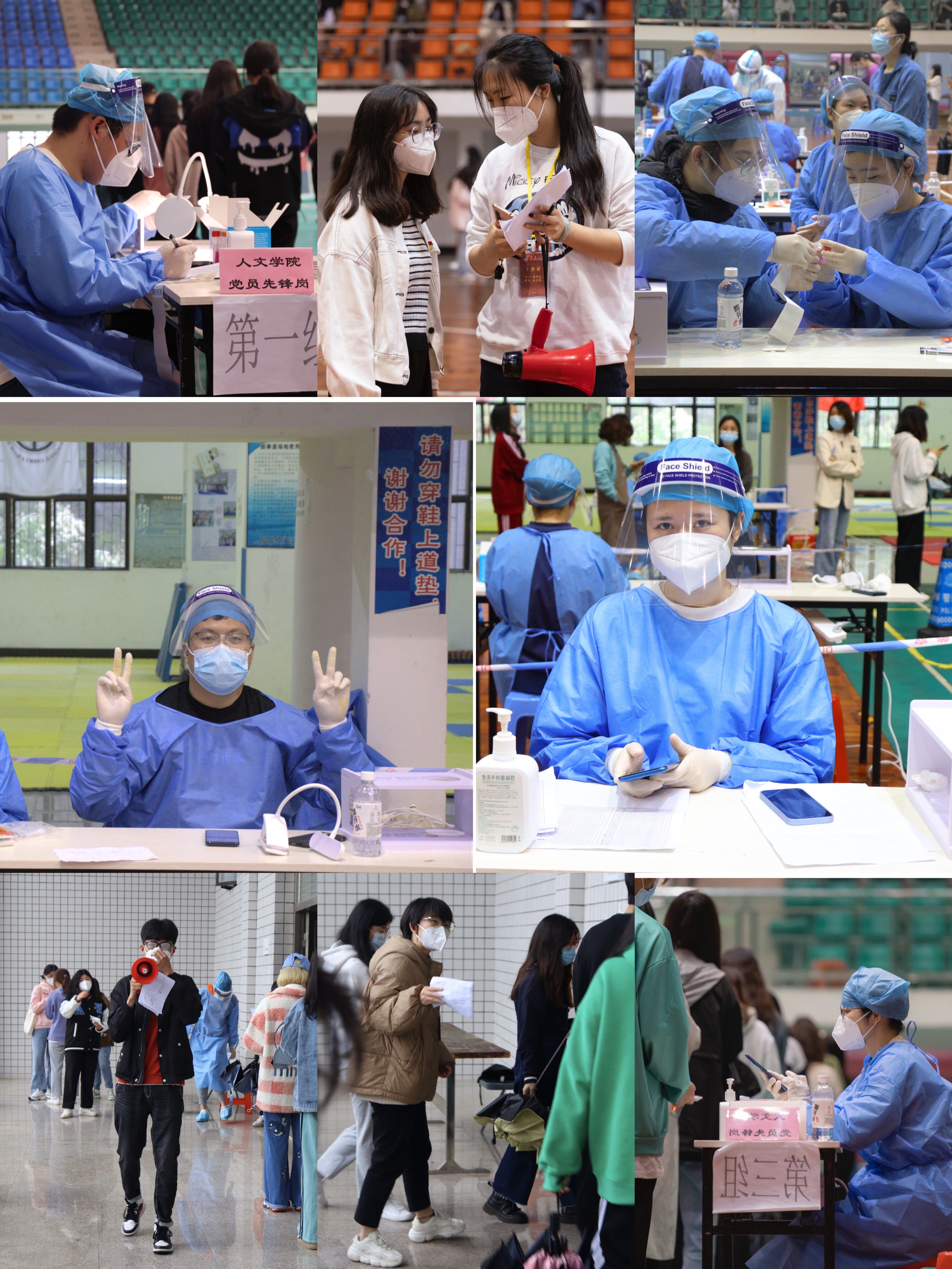 党旗飘扬在“疫”线,人文教师助战疫。欧怒、岳秀文、朱婷、王勇浜、李育瑜、王君婷、邵梓隽、唱菲璠、戴舒容、谢日菲、尚可、许夏晴、周艺欣、李荣坤、林丹、袁亚慧等党员教师和入党积极分子闻令而动,挺身而出。在williamhill的核酸检测现场,担当起防疫“排头兵”,有序组织学生们排队进行核酸检测、协助进行身份信息采集工作、宣传疫情防控知识等相关工作,充分发挥党员先锋模范作用,用实际行动为williamhill师生安全筑起坚固防线,让党旗在战“疫”的一线高高飘扬。