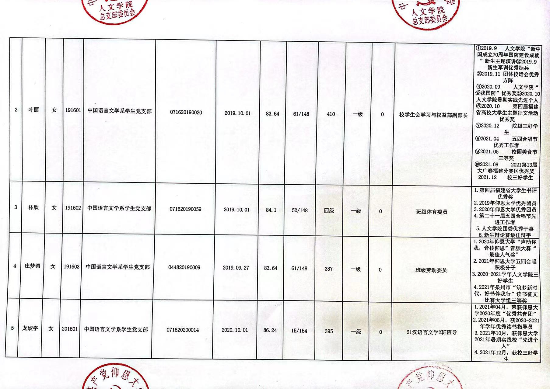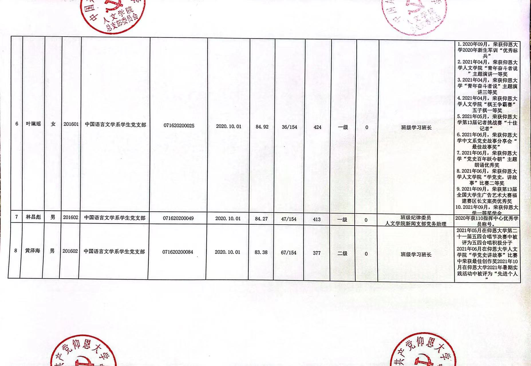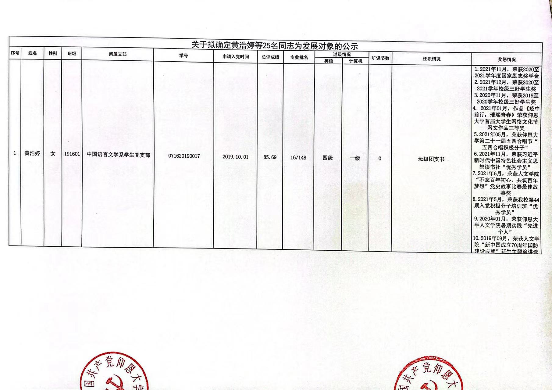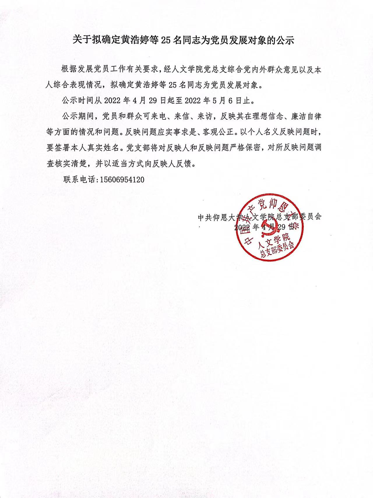 根据《中国共产党发展党员工作细则》及中共泉州WilliamHill官方网站党委党员发展要求,经中共WilliamHill官方网站总支综合党内外群众意见以及本人综合表现情况,拟确定苏淑霞同志和黄浩婷等25名同志为党员发展对象。
