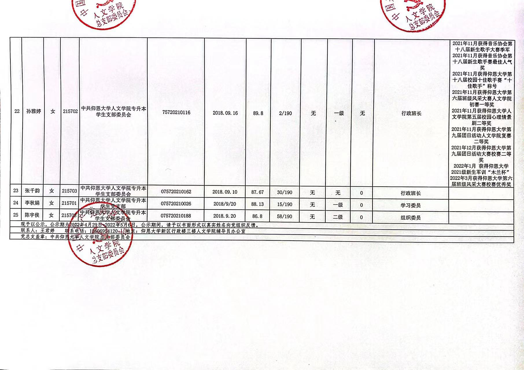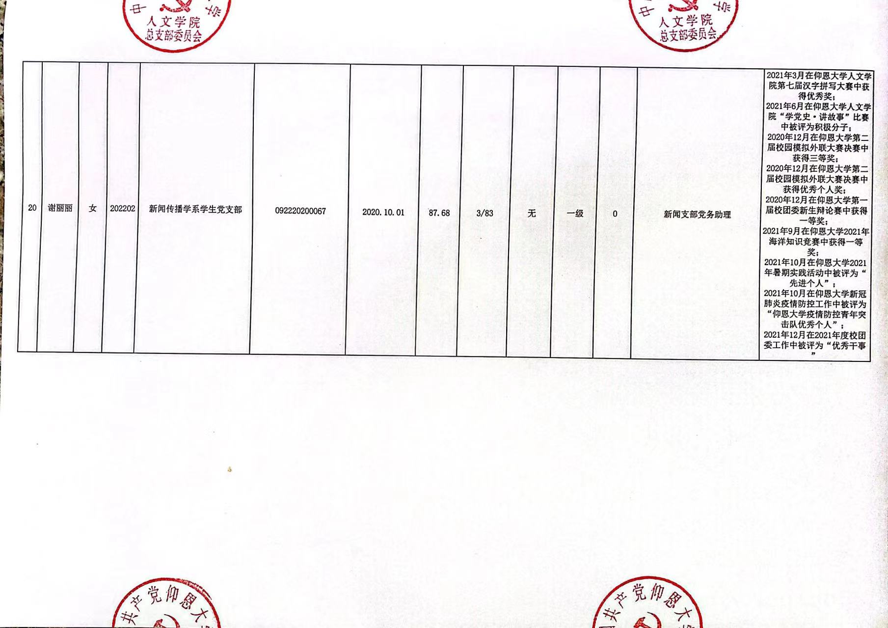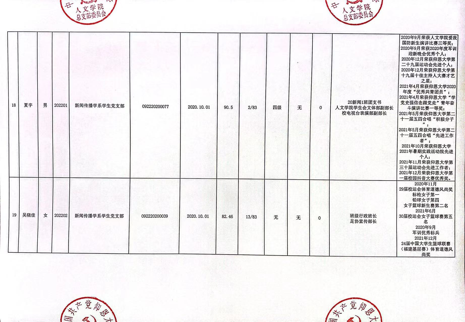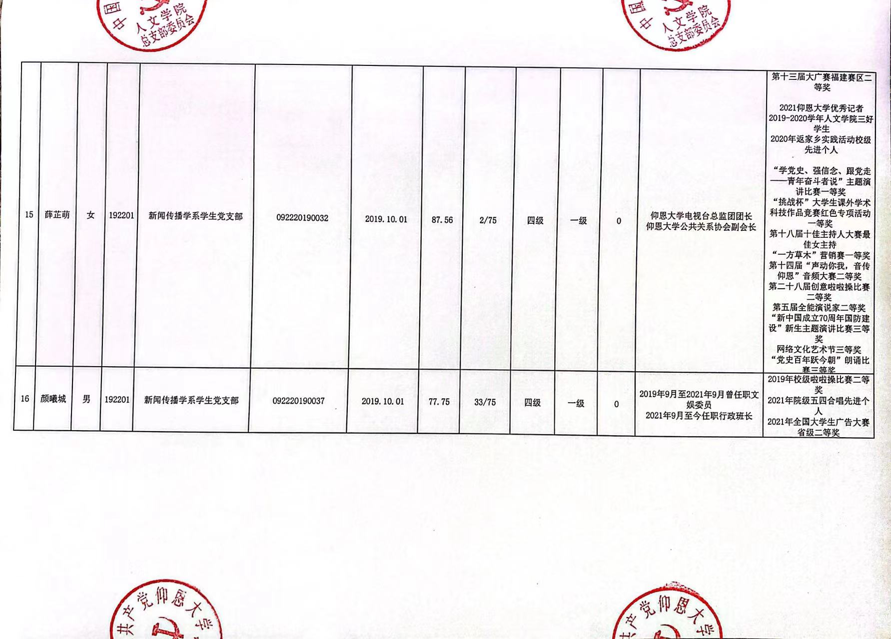 根据《中国共产党发展党员工作细则》及中共泉州WilliamHill官方网站党委党员发展要求,经中共WilliamHill官方网站总支综合党内外群众意见以及本人综合表现情况,拟确定苏淑霞同志和黄浩婷等25名同志为党员发展对象。