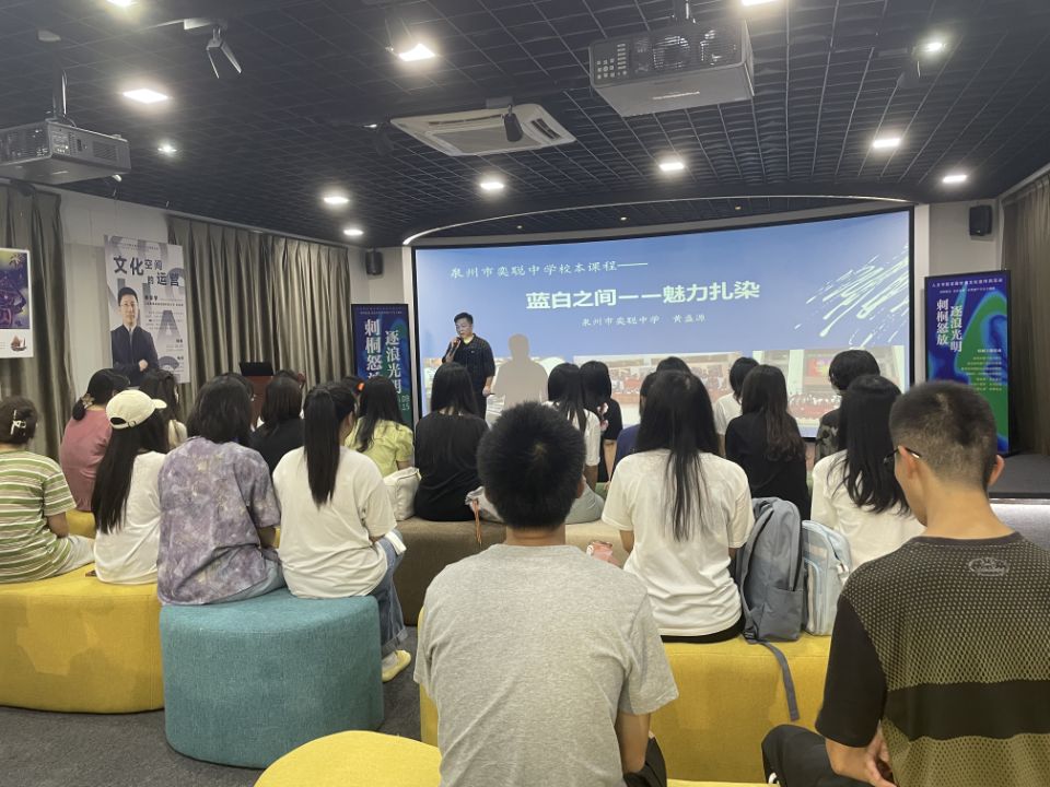 6月19日晚上于普照楼228,williamhill英国官网邀请外聘教师苏一森为williamhill20级文创班同学开展“蓝白之间——魅力扎染”非遗文化教学活动。
