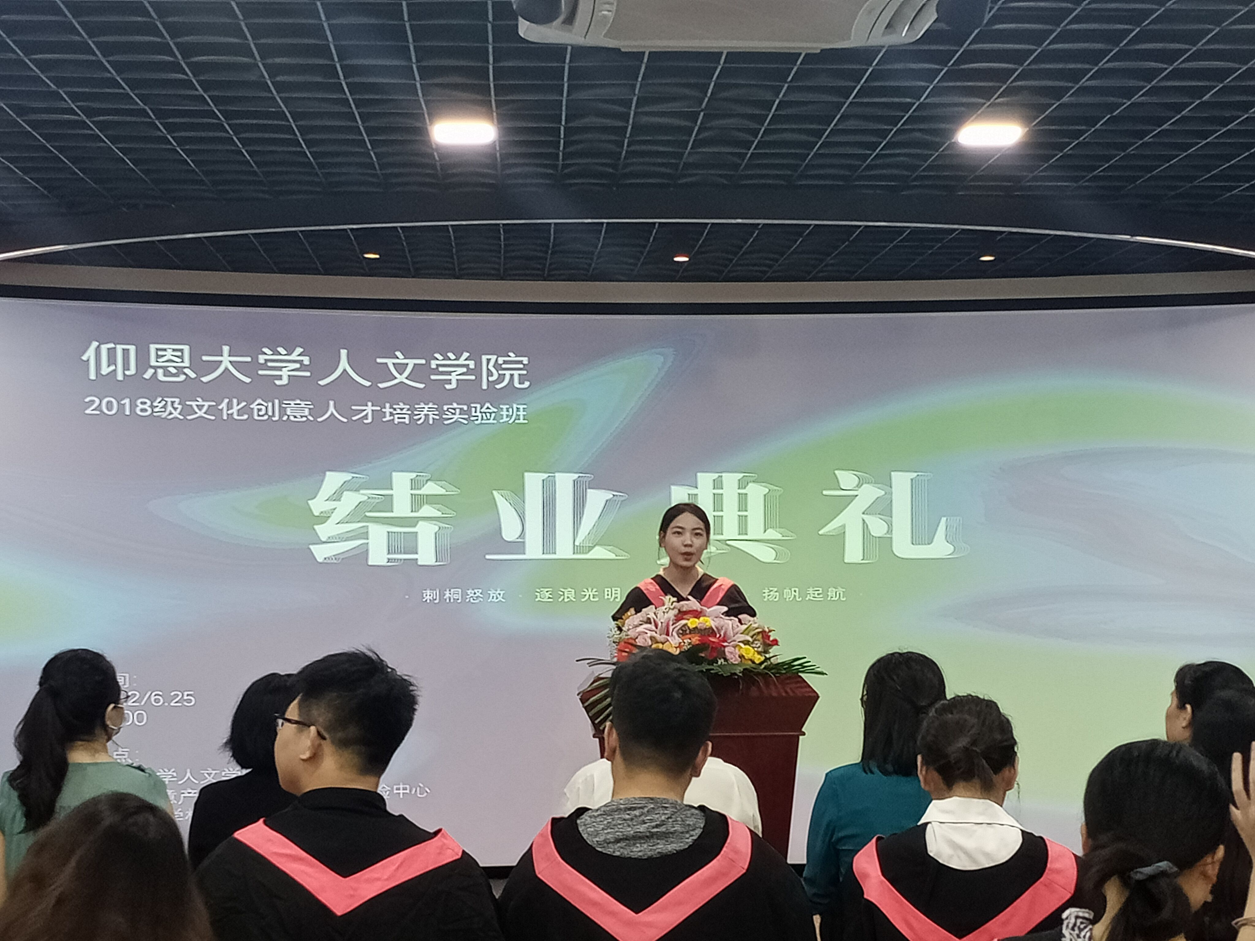 18级文创班学生代表发言 紧接着是2018级文创班三位代表发表讲话,她们表示加入文创班是她们大学四年中最有意义的事情,在这里她们不仅认识了新朋友,还提高了专业竞争力,开阔了产业眼界,成就了不一样的自己。