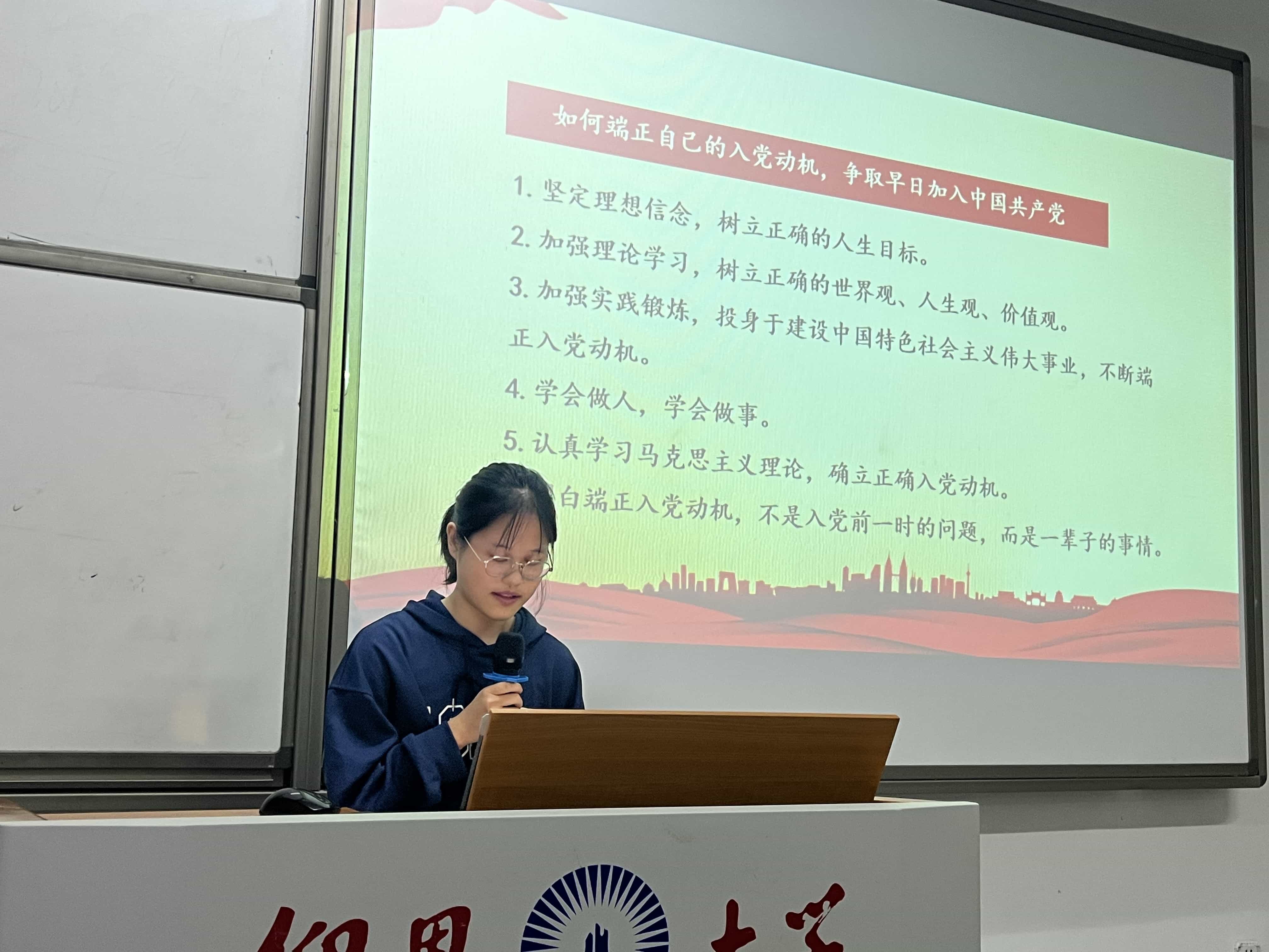讨论会内容包括“学习党的二十大重要精神”、“树立正确的入党动机”、“如何发挥入党积极分子的先锋模范作用”、“为什么说加入中国共产党是新时代大学生的正确选择”等四个方面内容,历时一个半小时。
