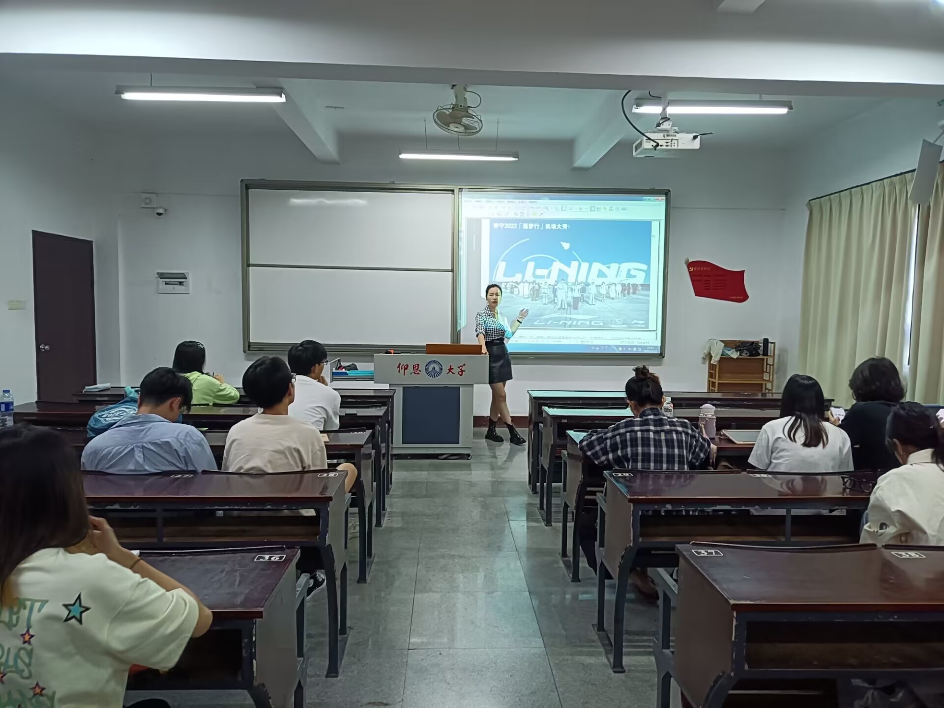 “企业形象设计”课程师生照片 黄伟群老师以“什么是设计”、“什么是企业形象设计”和“如何做好企业形象设计”三个部分展开说明。首先,黄伟群老师指出中国企业具有无限发展潜力,而年轻人在其中起到了关键性作用,并指出设计要审视过去以及现在,才能拥有未来,才具有真正的人文精神。随后,黄伟群老师介绍到企业形象设计是改善和有效提升企业形象的经营技法,以及企业形象设计的流程,指出其中最重要的两点是品牌定位和产品迭代。同时,黄伟群老师通过回顾中国商业的发展,提出商业的未来需要硬科技与软实力结合。此外,黄伟群老师以理论联系实际的方式,分享国内最新市场资讯,告诉同学们设计的崛起的背后是中国的崛起。她从新消费趋势变革的三个方面,即用户心智变化、品类需求改变、决策路径变化告诉同学们在今后进行企业形象设计时要注重功能、情感和社交诉求。