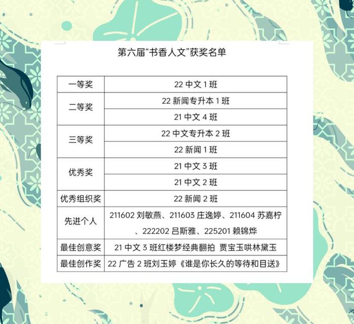 第六届“书香人文”获奖名单