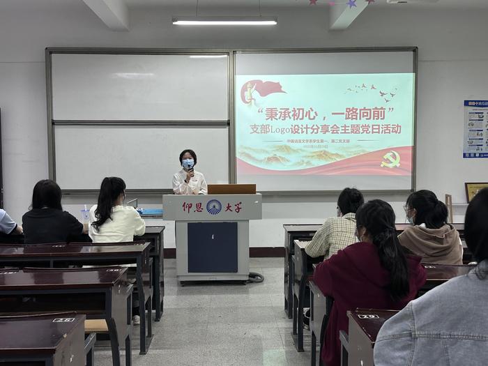 中国语言文学系学生第一、第二党支部于5月23日晚7:30在仰恩楼B1-201举办“秉承初心,一路向前”中文系学生党支部支部Logo设计作品征集分享会。中国语言文学系学生第二党支部书记谢云出席本次活动。