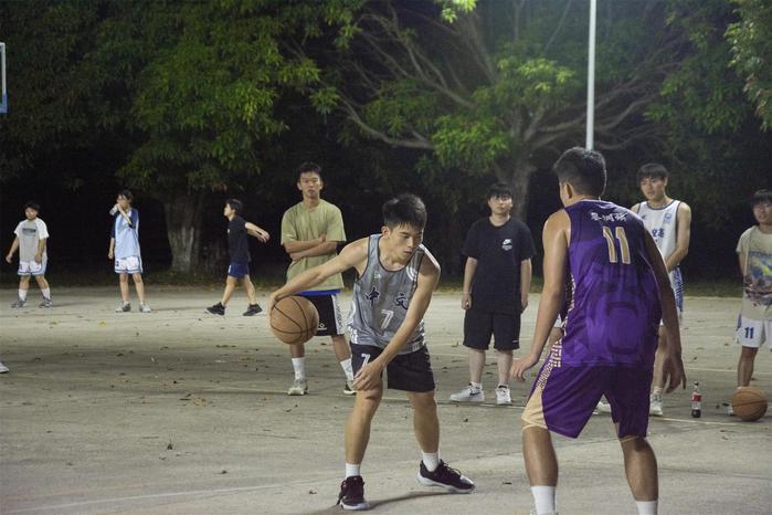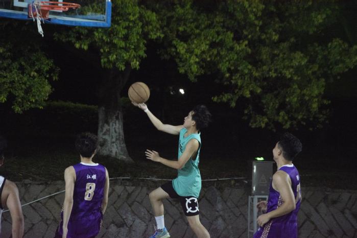篮球比赛中,虽然因雨势过大,比赛被迫暂停,但队员们的热情不会停下。每个队员都顽强拼搏,丝毫不放松每一次进攻机会,竭尽全力的奔跑,全力的投入,抢断、突破、跳投、远投、盖帽,你攻我守,队员们用各式各样的篮球技巧和精准的投篮为球队争得了一分又一分。