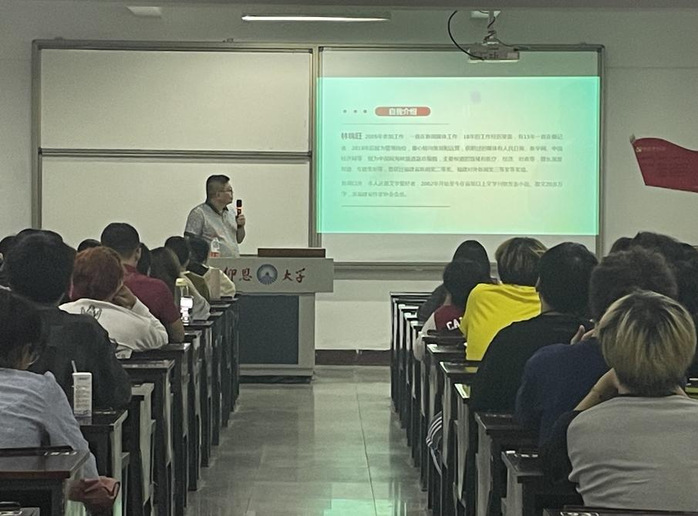 10月9日晚上,中国网海峡频道副总编林锦旺在williamhill2023级网络与新媒体专业1、2班的《大学写作》课上以讲述写作中的新闻文体为主线,为同学们介绍了一名新闻系学生应该具备的常识。