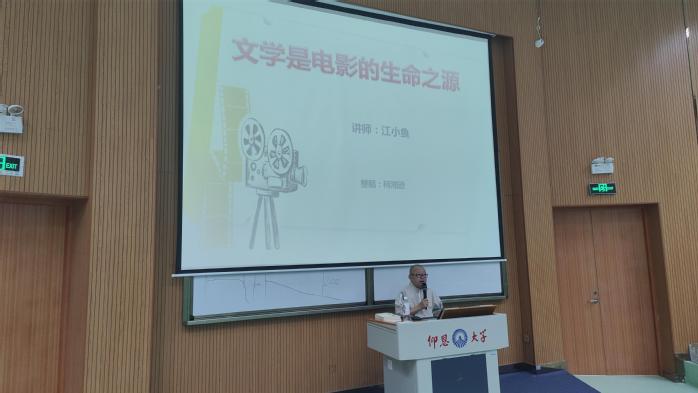 本次讲座的主题为《文学是电影的生命之源》,旨在强调文学在影视作品创作中的重要性。江小鱼向大家介绍了“八大艺术”,其中,重点阐述了文学与影视的关系。他提出,“文学是影视的根基和魂”,好的文学能为好的电影锦上添花。为更好地帮助大家理解,江小鱼用《射雕英雄传》《东邪西毒》《教父》等例子向大家证明了“好的电影是根据好的文学电影改编的,改编得当,三流小说也会变一流”。紧接着,江小鱼再次提出“文学是电影的根”,一部好的文学作品能带给影视作品更丰富的人性的挖掘。