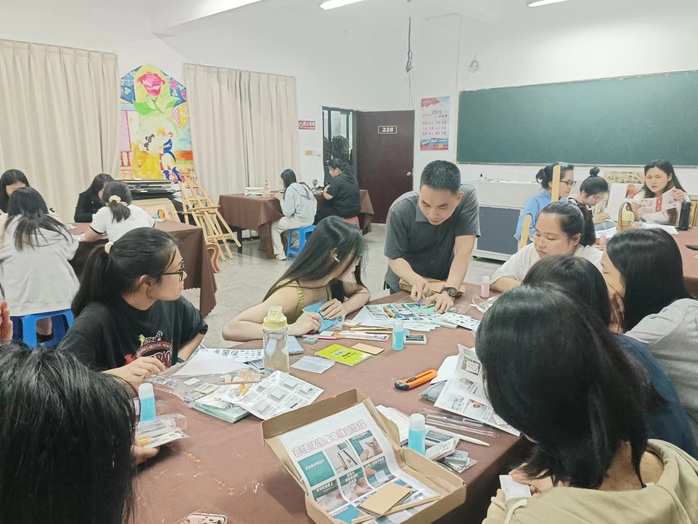 为加深同学们对艺术设计的了解、提高创作思维,4月28日晚上,WilliamHill官方网站特邀洛江区美术家协会副秘书长、泉州市美术家协会会员、洛江区弘益艺术文创中心教师——苏一森老师在新区普照楼228为2022级文创班同学讲授《创意与设计》的课程。