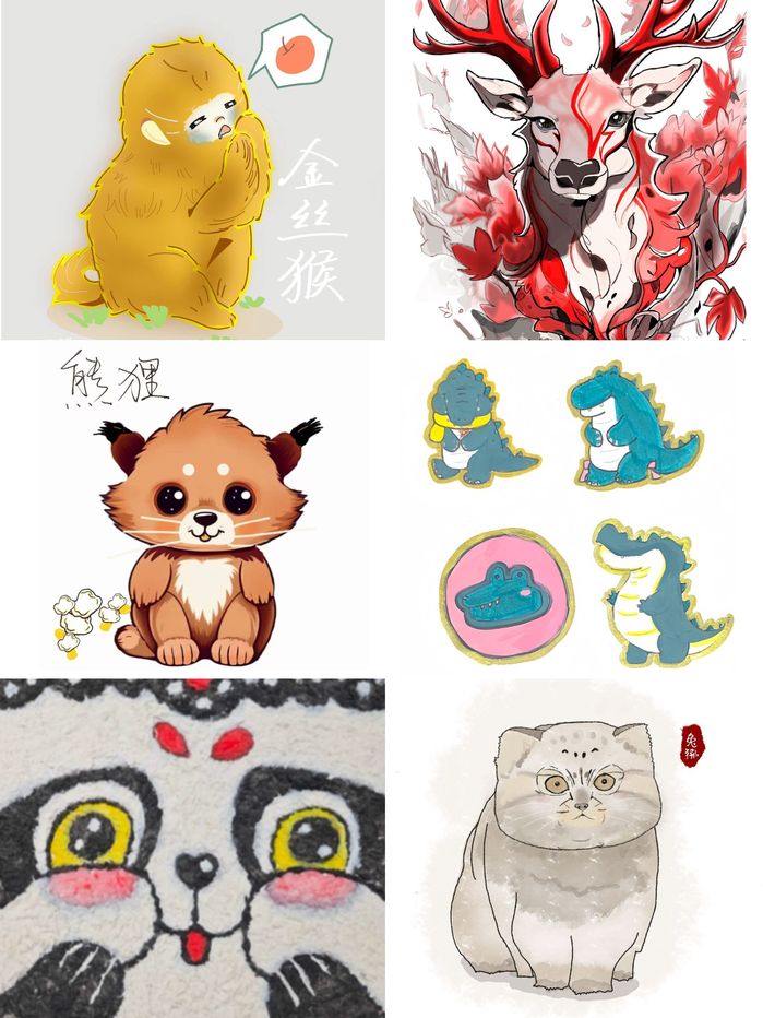活动自启动以来,便吸引了各个专业众多学生参加,前后共收到了43份作品。每位设计者都展示了自己对珍稀动物深厚的情感和敏锐的洞察力。他们通过深入研究珍稀动物的生活习性、生态环境和生存现状,从中汲取灵感,创作出一幅幅充满创意和深意的作品。这些作品在设计上各具特色,有的以简洁明快的线条勾勒出珍稀动物的轮廓,有的则通过丰富的色彩和纹理展示出珍稀动物的生活形态。