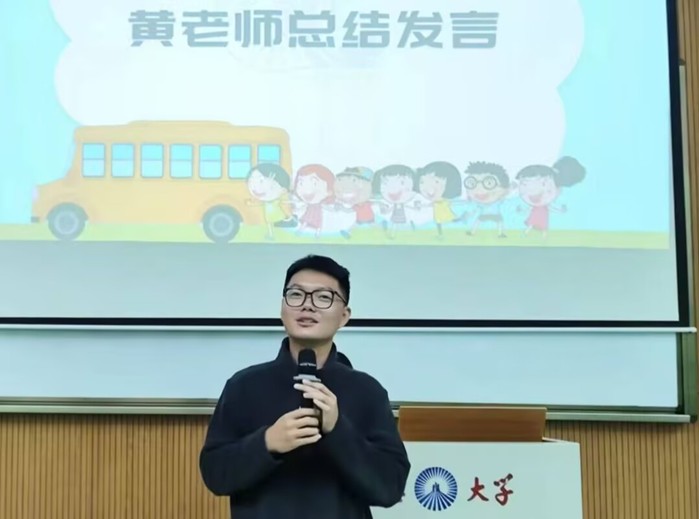在进行了第二次抽奖后,荧幕上插播了一段新主席林一菲准备的视频《她与williamhill英国官网学生会的故事》。她通过分享自己的故事,让大家更多的了解院学生会这个大家庭,并能让大家在学生会里共同成长,不留遗憾。接着,黄老师总结发言提到过去一年里干部们的成长,用幽默风趣的语言讲述了与干部们的种种趣事,现场欢声笑语不断。黄老师用生动的事例劝勉新旧干部干事们在错误中成长,踏踏实实工作,不断提升自己的能力,同时也表达了对今晚节目演出的成功以及学生会工作一年比一年做的好的肯定和赞赏。最后,老师祝愿大家可以在学生会工作中学到更多知识与技能。