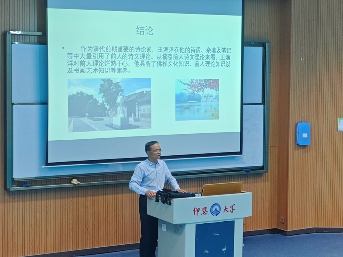 讲座伊始,洪树华教授深入剖析了王渔洋的诗论作品,其在诗话、著作、笔记中高达63次引用前人论述,足见对前人诗文理论的接受范围广泛。并且,王渔洋所引用内容涵盖陆机《文赋》、钟嵘《诗品》、严羽《沧浪诗话》等诸多经典文献,对传统理论熟练程度较高。