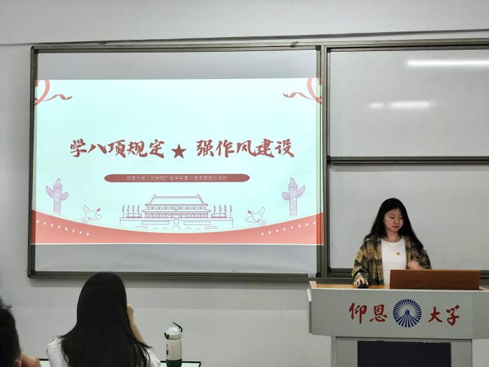 为贯彻全面从严治党要求,提升青年学生党性修养,广告学系学生第二党支部于6月4日下午16:00开展“学八项规定,强作风精神”主题党日活动,共探新时代作风建设路径。