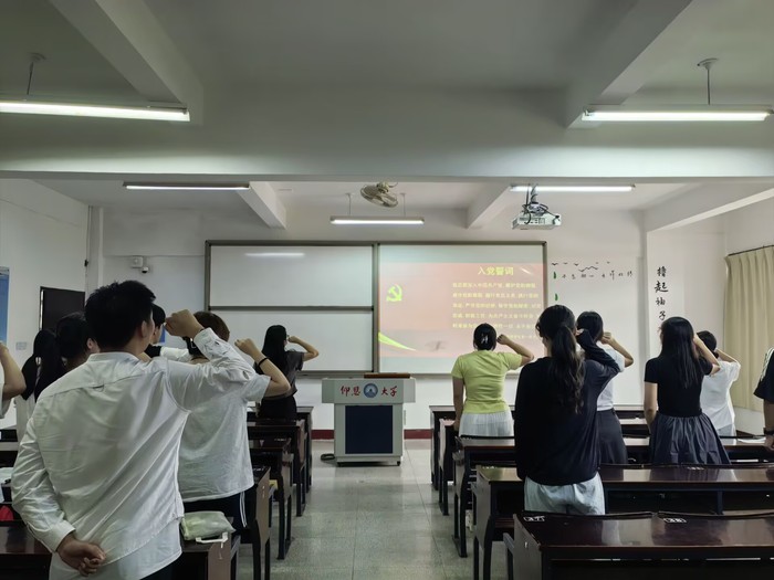 会议最后,支部书记赵潇潇带领与会党员庄严宣誓,并对此次会议进行总结。她首先向新转正的党员表示热烈祝贺,表示转正既是荣誉更是责任,要以此次转正为新起点,把对党的忠诚融入日常学习工作中,主动担当作为,在服务群众中践行初心使命。此次会议的召开是对中国语言文学系学生第一党支部力量的有力增强,全体党员将以更加坚定的信念和更加昂扬的斗志,为党的事业不懈奋斗。(谭榆婷/文 邓昕玥/图)
