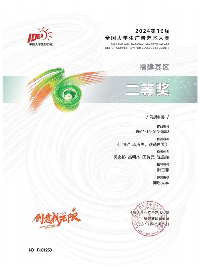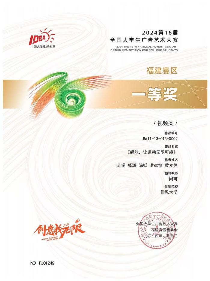 1.全国大学生广告艺术大赛:省级一等奖3项;省级二等奖7项;省级三等奖16项