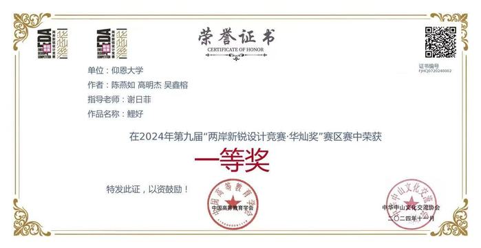 4.华灿奖两岸新锐设计赛:国家级二等奖1项;省级一等奖1项