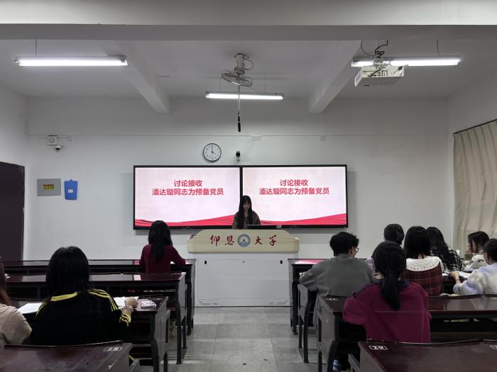 2025年12月09日下午,品牌传播系学生第二党支部于仰恩楼A3-105召开预备党员接收大会,参加本次会议的有发展对象、品牌传播系学生第二党支部全体党员。会议由支部书记李育瑜主持。