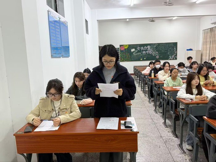 2025年12月19日下午,中国语言文学系学生第一党支部于祥贤楼107召开预备党员转正大会。支部书记林思彤主持本次会议,支部全体党员参加了本次会议。